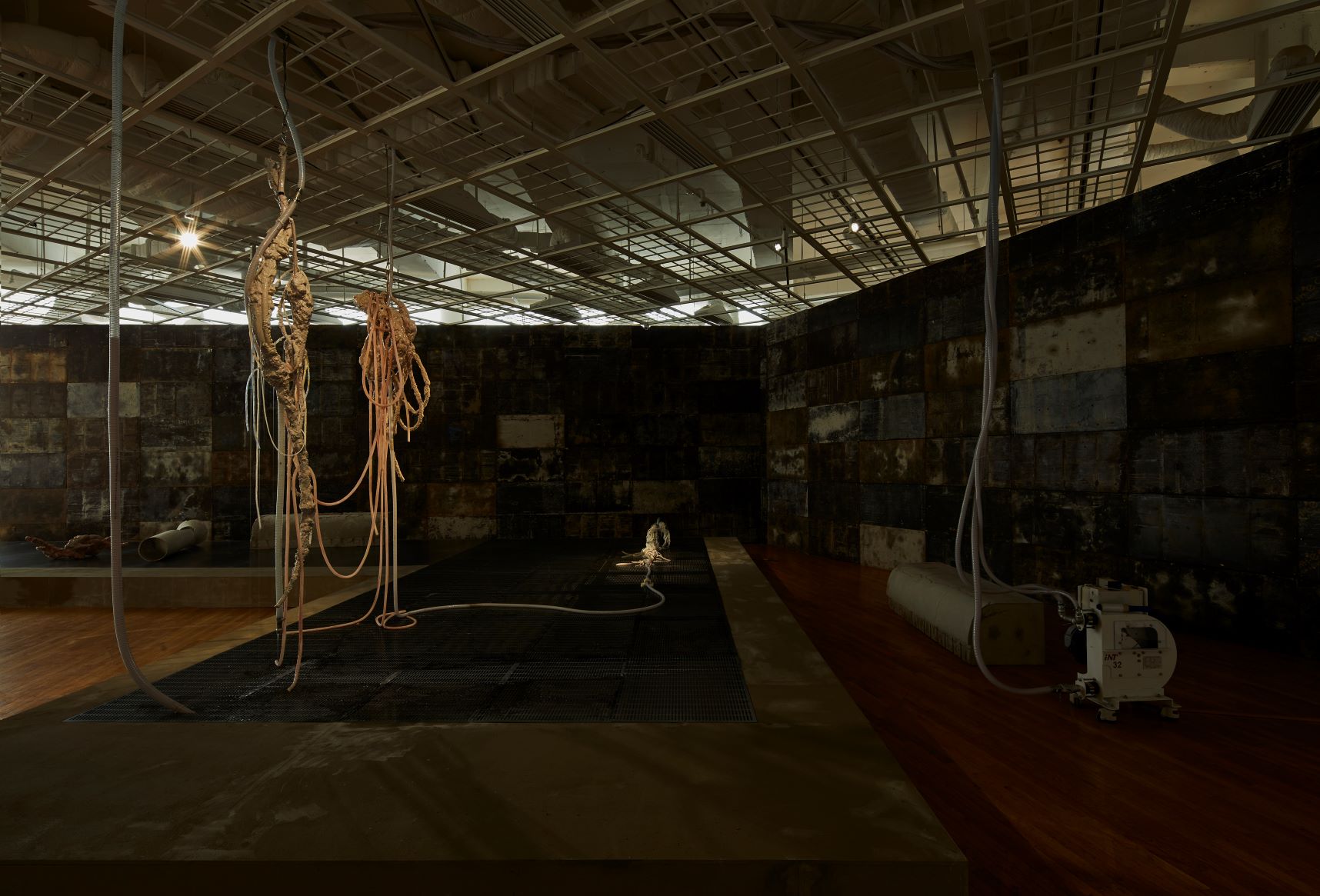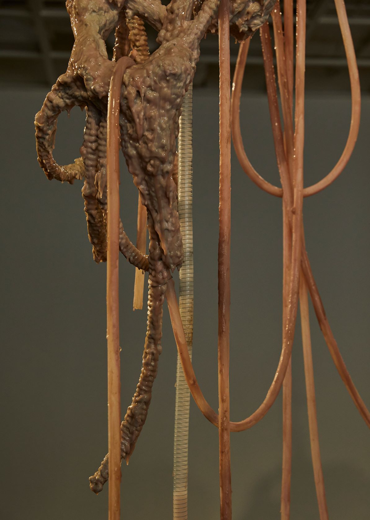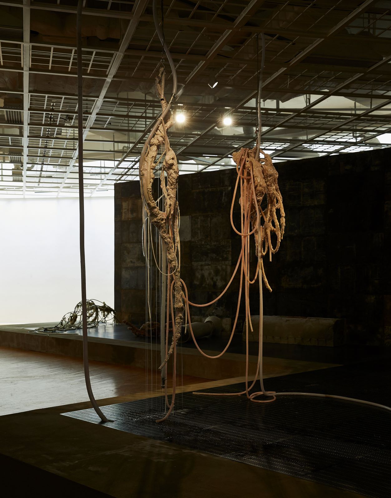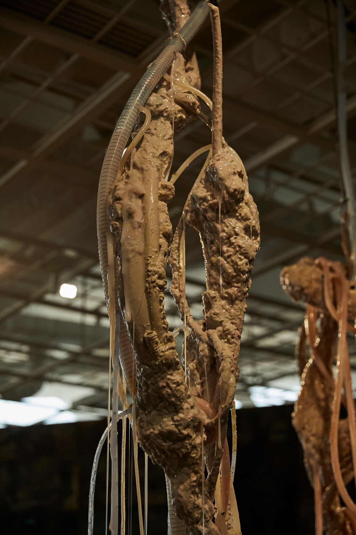 실리콘, pvc호스, 호스 펌프, 색소를 탄 글리세린, 철판에 레이저 커팅, 중고 거푸집 및 혼합 매체, 가변 설치, 긴 조각의 신장 대략 230 cm, 2020