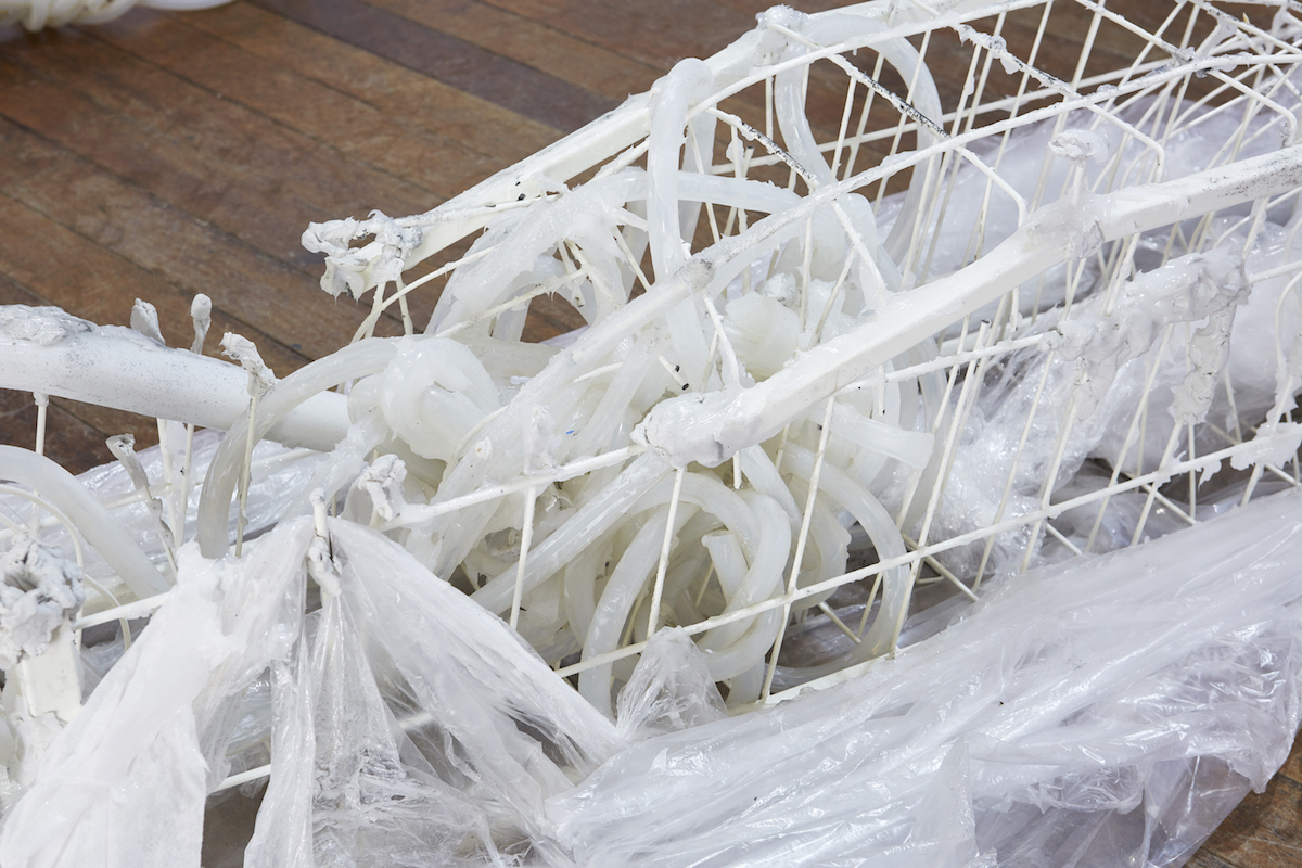 철제 오브제, 실리콘 호스, 파이프, 물티슈, 유토에 윤활제 및 혼합 재료,